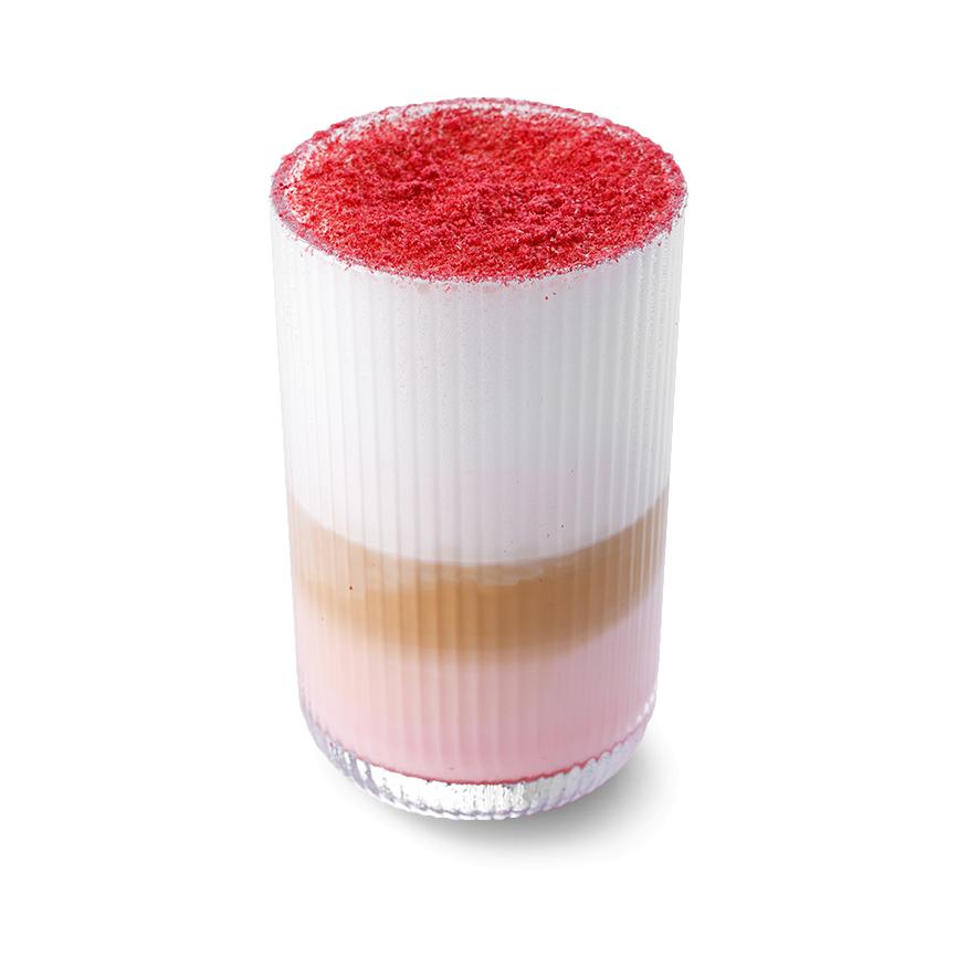 молоко, эспрессо, малиновый сироп, сублимированная малина