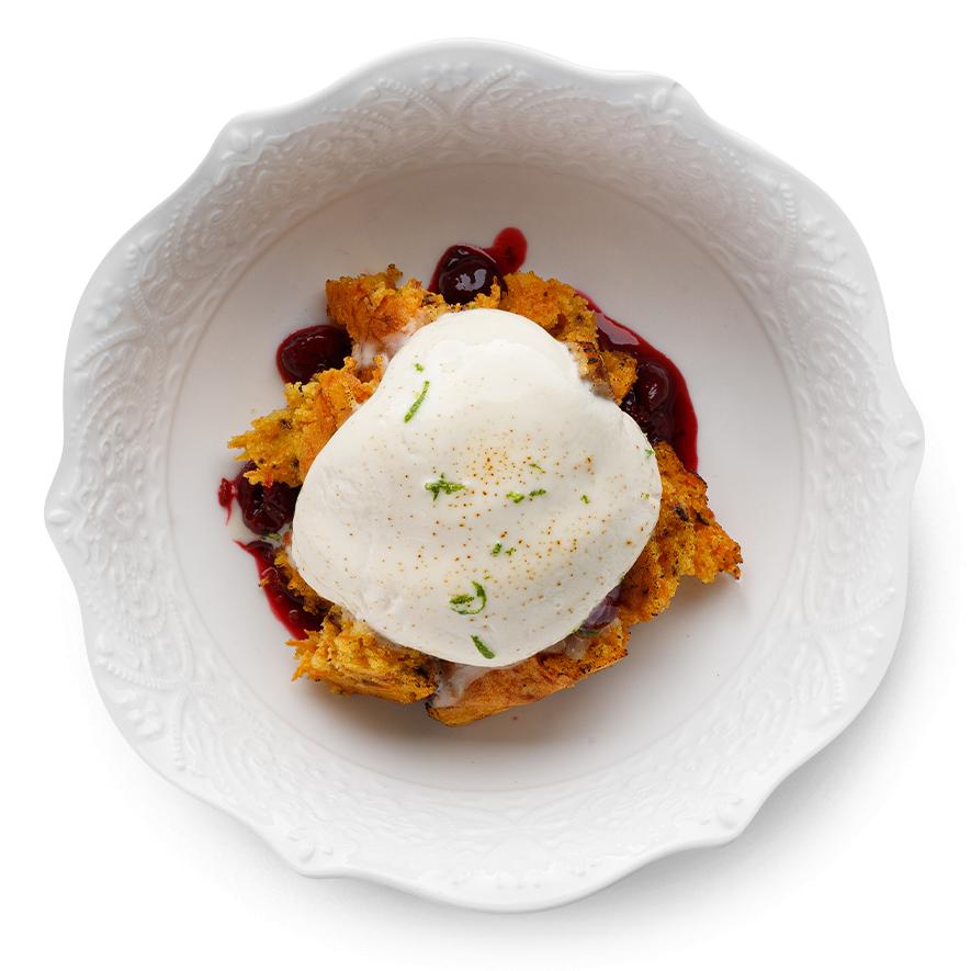 слоеное тесто, вишня, корица, кедровые орехи, мороженое, мята