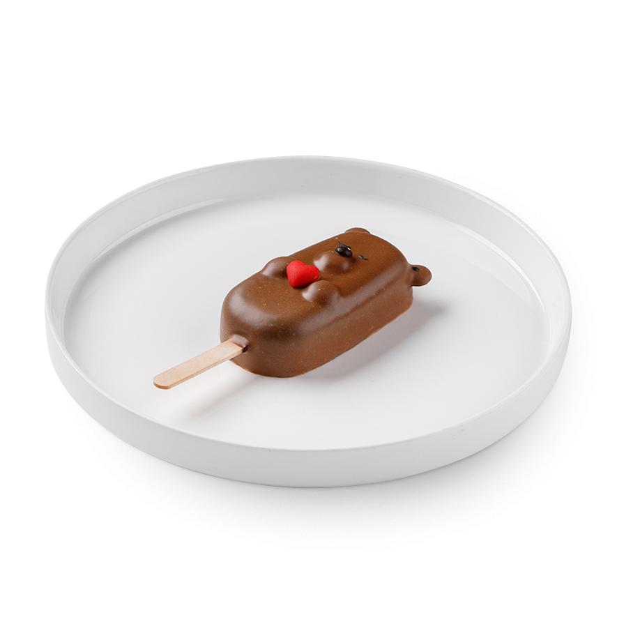 ванильный бисквит, сливочное масло, сгущёное молоко, глазурь и декор из молочного шоколада